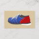 Promova o treinamento de boliches ou a instrução de negócios ou becos de boliches com cartões de visitas fáceis de personalizar. Estes apresentam uma ilustração de estilo realista de uma bola de boliche e pinos na frente e uma ilustração de uma calçado na parte traseira. A frente tem pontos para que você adicione seu nome e detalhes de contato personalizados em letras azul de tigela.