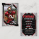 Este modelo ousado e moderno de jogo de futebol é perfeito para mostrar o seu jogador favorito. Personalize-o com sua própria foto, nome, estatísticas e informações de equipe. O esquema de cores vermelho e preto certamente se destaca, fazer um presente de excelente para qualquer fã de futebol.