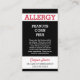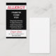 Cartão telefónico preto feito sob encomenda da emergência do restaurante do alerta da alergia. Edite este cartão com informação da alergia. Cartão do viagem com informação sobre suas alergias e como evitar a contaminação colateral para preparar uma refeição. Todo o texto é editável. Adicione seu nome e contacte a informação. Suporte do cartão é branco liso a entregar escrevem todas as notas adicionais por você ou por funcionarios da cozinha. Contacte para pedidos feitos sob encomenda. Mais engrenagem da alergia em www.LilAllergyAdvocates.com
