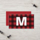 Cartão De Contato Monograma do Padrão Rustic Red & Black Buffalo Xad