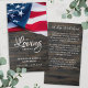 American Flag Memorial Funeral Prayer Card. Este cartão de oração para memoriais patriótico apresenta uma bandeira dos Estados Unidos da América sobre um fundo de madeira escura. Frente "Na Memória Adoradora" Personalize este cartão de oração fúnebre militar com o nome e as datas dos seus entes queridos e o sentimento. Traseira - Poema 'Depois', que pode ser personalizado, por favor, chame a atenção se você quiser um design com um poema específico diferente de. Este cartão de oração fúnebre da bandeira americana sem foto é um tesouro, serviços fúnebres militares e serviço de memorial veterano ou celebração da vida. Em Amar Memória Militar Memorial Americano Cartas De Oração De Bandeira. COPYRIGHT © 2020 Judy Burrows, Black Dog Art - Todos Os Direitos Reservados. Patriótica Memorial Funeral Prayer Card EUA Bandeira