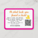 Cartão De Contato Pink Conquackulations! Cruising Duck Tag