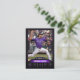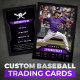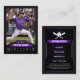 Este modelo de cartão de baseball moderno e elegante é perfeito para mostrar as estatísticas e realizações de seu jogador favorito. Com seu esquema de cores preto e roxo, ele certamente se destaca da multidão. Personalize-o com o nome, a imagem e as estatísticas do seu jogador para criar um cartão verdadeiramente único e memorável. Isto faz um presente de excelente para qualquer fã ou jogador de beisebol.