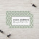 Este design foi embelezado com um padrão verde sábio e branco de óculos. Atrás de um crachá branco esboçado em uma fina borda preta, eu cobri o fundo em uma cor verde estável editável, seguida pelo padrão de ogee branco. Você pode mudar o plano de fundo para qualquer cor que quiser, simplesmente usando as ferramentas personalizadas do Zazzle para mudar a cor de fundo principal. O texto aparece em preto em ambos os lados; você pode mudar isso, junto com fontes e tamanhos, se preferir. Todos os detalhes foram adicionados separadamente e deixados desbloqueados para lhe dar o máximo controle de design. Por favor, não hesite em contactar se precisar de assistência. // Concebida por Melody Watson para Paper Muserie.