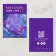 Cartões de exposição de joias com tema de agata de galáxia roxa! Apresenta seu nome tipografia sans-serif com texto totalmente editável em ambos os lados. Este cartão de visita é fácil de fazer e está cheio de maneiras de personalizar sua empresa, incluindo código qr, exibição de sites e mídias sociais, obrigado para você, chamada para ação e sala opcional para incluir estilo de joalharia no verso. Inclui modelo e linhas cortadas para brincos e colar. *** Orifícios não cortados. *** Use uma pá e uma lâmina para cortar furos e soltar para joias. Enrole os colares ao redor da placa e conecte-se à parte traseira para proteção.