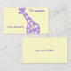 Girafa roxa bonita projetada para crianças! Adicione seu próprio texto para obter seu cartão exclusivo. Excelente como "chame minha mãe". Deixe um com o professor, coloque um na bolsa, um no bolso !Crianças podem se perder. Proteja-os!