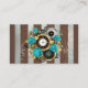 Cartão De Contato Relógio e Rosas de Turquesa em Striping