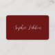 Um cartão de contato vermelho escuro elegante e simples. Frente: seu nome (estilo de fonte manuscrito); traseiro: profissão, telefone e email... para uma primeira impressão clássica