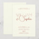 Este convite elegante apresenta um sofisticado fundo creme que define o tom perfeito para o seu dia especial. O nome do noivo é apresentado em letras maiúsculas em negrito, exalando força e clareza, enquanto o nome da noiva é estilizado delicadamente em cursiva para um toque de elegância e romance. Essa combinação atenciosa de fontes destaca a individualidade e a união, tornando-a uma maneira bonita e memorável de convidar seus entes queridos para celebrar sua jornada juntos. É o blend perfeito de estilo moderno e tradição atemporal, projetado para preparar o cenário para um dia cheio de amor e alegria.