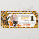 Gato preto cercado por abóboras com impressão de fundo de milho doce e trim de stripe com design de arco de ponto de polca preto e laranja em 3D para um primeiro aniversário de Halloween.