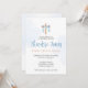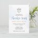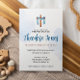 Celebre a ocasião especial do batismo do seu menino com nosso cartão de convite elegante e personalizável. O design apresenta um fundo azul sereno em aquarela, adornado com uma cruz simples, porém graciosa, incorporando um toque suave e sincero. O estilo minimalista garante um apelo atemporal, perfeito para comemorar este evento sagrado. Personalize facilmente os detalhes para criar um convite único e memorável para seus convidados queridos.