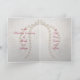 Convite personalizável para casamento, solicitando a honra de sua presença. As informações de dentro aparecem em páginas que parecem cobertas no local.