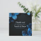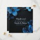 Cartão de agradecimento de casamento escuro com flores azuis com brilhos.