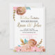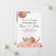 Cartão de Convite de Casamento Floral Dourado e Rosa.