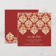 Cartão de convite de casamento para salvar a data branco simples elegante indiano asiático sul-asiático damasco vermelho