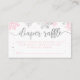 Cartão de ingresso moderno para sorteio de fraldas no chá de bebê com motivos de flocos de neve rosa de inverno e brilho prateado com o texto "livros para o bebê"