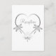 Convite de recepção de casamento com desenho de coração com dragoninhas prateadas. Você pode personalizar este convite de recepção de casamento com detalhes do seu casamento. Caso precise de ajuda com a personalização, entre em contato conosco através do link nesta página. Convite de recepção de casamento personalizado com coração prateado e desenho de dragoninhas