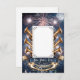 Celebre a chegada do Ano Novo com este convite deslumbrante, apresentando um céu noturno repleto de fogos de artifício coloridos e uma lua cheia luminosa. Trombetas douradas anunciam as festividades, enquanto o espaço central branco aguarda os detalhes da sua festa. A faixa proclama “Festa de Ano Novo” em uma escrita elegante, cercada por faíscas douradas, definindo o tom para uma noite inesquecível.