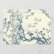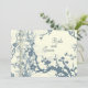 Convites de casamento em azul elegante e bege com delicado padrão de árvore florida. Personalizável com os detalhes da sua cerimônia.