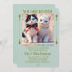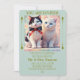 A imagem retrata um doce casal de gatos cercados por flores, sentados em uma mesa de cor pastéis. A imagem evoca um momento de ternura refletido na expressão facial dos gatos.