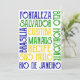 A bandeira brasileira inspirou trabalho de arte com nomes de cidades como Foraleza, Salvador da Bahia, Rio de Janeiro, São Paulo ou Recife. ideia de presente de excelente para cada brasileiro.