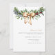 Este elegante cartão de convite para o casamento floral e decorativo de Natal apresenta um simples fundo branco, flores e folhagem de cor de água festiva, decoração de Natal e um elegante modelo de casamento que é fácil de personalizar.