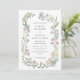 Este vibrante convite de casamento mostra uma fronteira de flores silvestres amarradas com fita azul. Uma borboleta e uma pequena lagarta adicionam um toque de choradeira. É perfeito para casais que dizem "eu faço" na natureza.