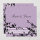 Convites de casamento em elegante roxo, preto e branco delicado padrão floral. Personalizável com os detalhes da sua cerimônia.