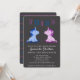Cartão de convite para chá de bebê personalizável com tema de unicórnio bebê fofo. Convites modernos de gêmeos unicórnio menino e menina para sua família e amigos. O design tem dois pequenos unicórnios, um azul para menino e um rosa para menina. O fundo é preto, mas você pode alterá-lo personalizando o convite.