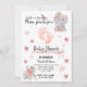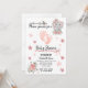 Cartão de convite para chás de latão - Elefante de bebê, rosas e estrelas motif