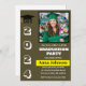 Crie o seu Cartão de Convite para Festas de formatura Verde de Classe de Ano. Personalize esta design com o seu próprio texto e a sua fotografia. Você pode personalizar ainda mais este design selecionando o botão "Editar Detalhes", se desejar. Aproveite a celebração da Festa de formatura com seus amigos e família.