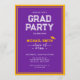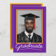 Celebre o marco do seu formando com este cartão de convite à graduação elegante e personalizável. Apresentando um tema clássico, roxo e escola de ouro e espaço para a foto, o nome, a escola e os detalhes do evento do seu formando, este design oferece uma forma eterno de convidar os entes queridos para o grande dia. Perfeito para segundo grau ou formandos! 𝐍 𝐎 𝐄! As cores do fundo e os elementos podem ser alterados. Apenas certifique-se de ajustá-los nos dois lados, na frente e atrás.