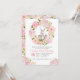 Cartão de Convite para primeiro aniversario de coelho com linda flor de peônia de rosa floral, confete de ouro e estilo de aquarela rosa.