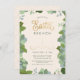 Este convite personalizável de Brunch de Páscoa (ou qualquer tipo de reunião de Páscoas) apresenta uma borda ilustrada de flores verdes, cinzas e azuis com um fundo de cor creme (que pode ser mudado para seu gosto). O texto "Páscoa" está em uma fonte dourada e moderna. Uma cruz dourada é incluída no design, mas pode ser removida após mais personalização, se desejar. Os detalhes do evento podem ser personalizados para sua reunião especial. O verso é uma cor de creme correspondente (também alterável) com um padrão de quatrefoil de ouro sobreposto.