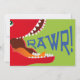 Um cartão pré-histórico de 4 anos de um tiranossauro vermelho bonito e assustador.