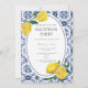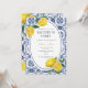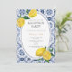 Personalize este cartão de convite para recepção de azulejos de limão costeiros Amalfi com suas próprias redações, de forma fácil e rápida, basta pressionar o botão personalizá-lo para reorganizar e formatar o estilo e a colocação do texto.