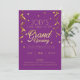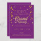 Cartão de convite RSVP de celebrações de abertura elegante, projetado com texto gradiente de ouro, fitas, estrelas como decorativo. Convide seus clientes para o lançamento de sua nova empresa com cartão de convite para design moderno e na moda. Basta editar o texto com os detalhes de contato da sua empresa na parte frontal e traseira do cartão.