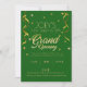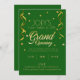 Cartão de convite RSVP de celebrações de abertura elegante, projetado com texto gradiente de ouro, fitas, estrelas como decorativo. Convide seus clientes para o lançamento de sua nova empresa com cartão de convite para design moderno e na moda. Basta editar o texto com os detalhes de contato da sua empresa na parte frontal e traseira do cartão.