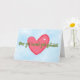 O cartão de boas-vindas do Dia Apanhei marca o aniversário da adoção de uma criança. Ele apresenta um coração rosa ilustrado em um fundo azul com nuvens e fonte de verde limão divertida no sentimento " Vi que você amava você te pegou!"