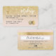Um elegante cartão de visita do estilo de cartão de crédito de na moda e artista de maquiagem, moderno, com uma tipografia de fontes de script moderna, num gradiente de glitter ombre dourado amarelo-chic e pastéis de geleiras escamoteiam fundo de tendência rosa. todo o texto é personalizável, adicione suas mídias sociais. Apresentando falso listras de ouro. Adicione seu logotipo, seu monograma e código QR.