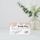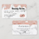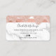 Um elegante cartão de visita do estilo de cartão de crédito de beleza na moda com um script moderno tipografia de fontes em um chip faux rosa gold glitter em um elegante mármore branco. todo texto é personalizável, adicione suas mídias sociais. Apresentando fita falsa rosa dourada. Adicione seu logotipo, seu monograma e código QR.