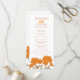 Flor de laranja do crisântemo duplo num programa de casamento branco. Conjunto de papelaria de desenho botânico. Edite este programa de casamento com seu próprio nome, datas, texto da cerimônia, assistentes de festa de casamento e obrigados. Um programa simples, mas elegante, simplesmente substitua o texto de amostra por seus detalhes de casamento. Programa de cerimônia de casamento de flores de laranja no outono moderno. Desenho esboço e design gráfico de Sarah Trett por www.sarahtrett.com para www.mylittleeden.com