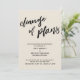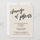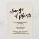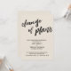 Esta simples distinção de suíte se deve à fonte moderna, escrita à mão, usada para frases de sotaque. Nesta peça, a fonte de script escrita à mão foi usada para criar um gráfico que lê "mudança de planos", grande e negrito. Use os campos modelo para adicionar seus detalhes pessoais e tornar este design único e moderno seu próprio. O plano de fundo pode ser alterado para qualquer cor que você preferir. Por favor, responda a quaisquer solicitações especiais ou personalize a assistência. 100 //