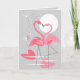 Um par de flamingos cor-de-rosa com pescoços curvados para formar um coração ficam no mar em uma praia ao luar. Este design elegante e romântico com um toque retrô é perfeito para casamentos, dia dos namorados ou para alguém que simplesmente ama flamingos. Criado em uma paleta de cores rosa, cinza e branco com um fundo que muda de cor. Um design personalizável para você personalizar com seu próprio texto, imagens e ideias. Uma imagem de arte digital original.