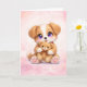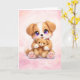 Envie um pouco de amor extra com este cartão de saudação de um adorável cachorrinho abraçando um ursinho de pelúcia. Esta ilustração doce apresenta um cachorrinho amoroso abraçando um ursinho de pelúcia macio, criando um design caloroso que simboliza conforto, amizade e afeto.