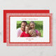 Cartão de cumprimentos de Natal com foto da família com borda gingham vermelha e branca em estilo retrô elegante e simples com borda rendilhada