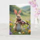 Este desenho mostra um coelho fofinho em pé com pelo cor de cervo em pé num prado verde, segurando um pequeno instrumento de cordas como se estivesse prestes a tocar uma melodia suave 🐰. Um pequeno pássaro amarelo pousa perto no topo recurvado do instrumento, inclinando-se com uma inclinação atenta que parece uma ligação doce e confiável entre os dois. A luz suave banha seus rostos, captando os olhos arregalados e curiosos do coelho e dando à cena um clima terno e companheiro. Ao seu redor, flores silvestres espalhadas em tons de lavanda, amarelo ensolarado e branco pontilham a grama como pequenos sinais de afeto 🌷. O fundo desaparece em colinas verdes onduladas e um céu pálido, com uma aparência desfocada e sonhadora que mantém o foco no par. Perto do topo, o texto de saudação está centrado num tom pastel claro, e uma linha menor de texto repousa abaixo dele num tom ligeiramente mais escuro para contraste. Detalhes finos mostram a textura