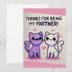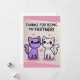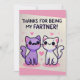 Adicione um toque de humor e um sorriso ao seu presente com este cartão de cumprimentos adorável e engraçado. Com um charmoso design de desenho animado de dois gatos fofos e uma frase divertida que diz "Obrigado por Ser Meu Parceiro", este cartão é ideal para várias ocasiões.