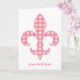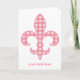 Cartão de Cumprimentos Fleur de lis Xadrez Rosa
