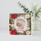Celebre a alegria da temporada com este cartão de felicitações chapado, lindamente projetado, perfeito para compartilhar a bênção mais recente da sua família. A frente apresenta uma borda floral festiva de poinsettias vermelhas, flores brancas, raminhos de pinheiro e frutas, emoldurando um espaço macio de cor creme onde uma foto do seu bebê dá vida ao cartão. As palavras 'Gratos pelo nosso presente nesta Temporada' aparecem abaixo da imagem, expressando gratidão sincera.